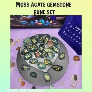 Moss Agate Gemstone Divination Rune Set