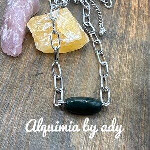 Moss Agate Maximalist pendant chunky statement silver curb link necklace
