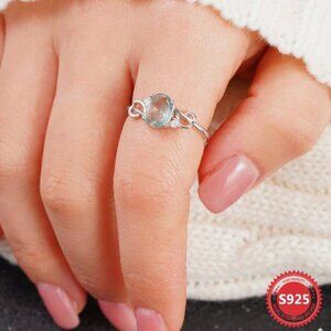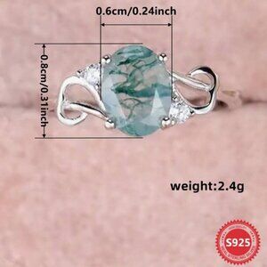 Moss Agate Oval Cut 925 Silver Ring with Zircons