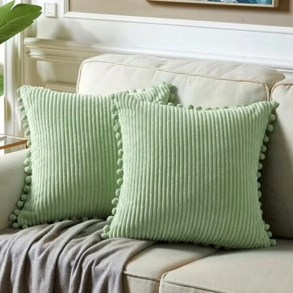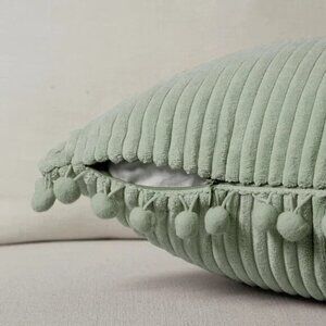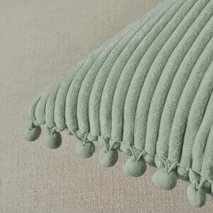Moss Green Luxury Farmhouse Dorm Velvet Pompom Cute Throw Pillow Cover/CaseSet