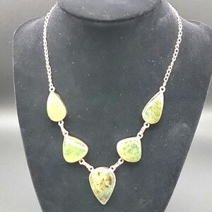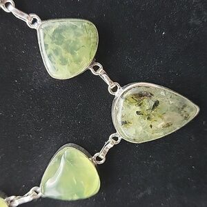 Up for you consideration is the NEW without tags Moss Prenite, silver plated necklace. Necklace has all natural gemstones. Can be adjusted to fit smaller as a 16" chocker.