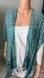Elegant floral kimono shawl with green and pink patterns. Perfect for layering or pool cover. Lightweight and flowing. 32 inches long and 35 from pit/pit