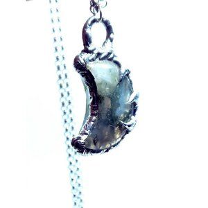 Moss agate moon crystal Necklace handmade crescent moon gothic metalwork