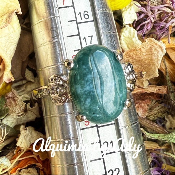 Moss agate silver gem ring