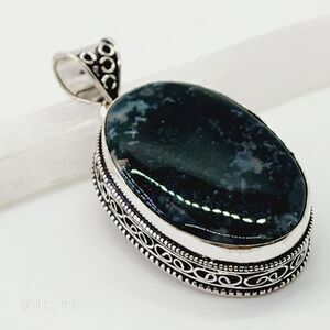 Moss Agate Vintage Style Setting Ethnic Handmade Pendant Jewelry 2.27"