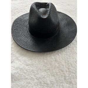 Mossant Paris Straw Hat Women Preppy Black Boho Vacation Summer Sz M NWT