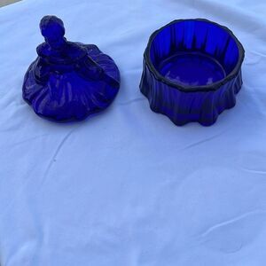Mosser Cobalt Blue Art Glass Lady Powder Box Retired Piece (#176) Collectors