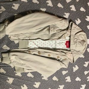 With floral style inside, 3 pockets in the front & 1 at the left shoulder. Never used it.