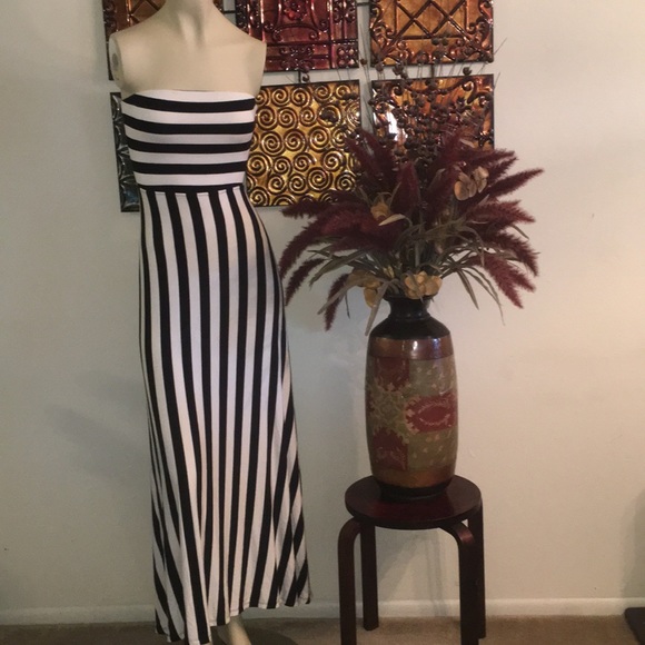 Mossimo maxi strapless dress Color Black and White Size XSmall In very good condition Key hole back 47” long