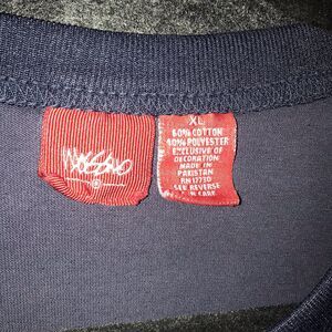 Mossimo 90s T Shirt Mens XL Crew Neck 22SRF Short Sleeve Navy Blue Vintage Heavyweight, fabric type is like how sports jerseys feels and looks like.