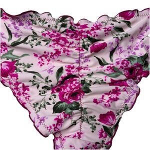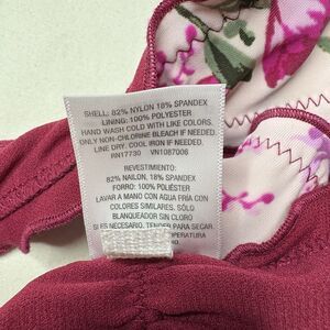 Mossimo Bikini Bottom Pink Cheeky Ruched Back Floral Burgundy Swimwear Size XL. In good condition. 82 % nylon / 18 % spandex. Lining: 100 % polyester.