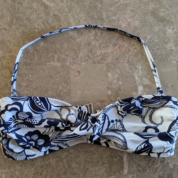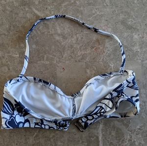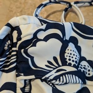 Navy & White floral bikini top. Small dark spot on top corner. Comes with removable strap.