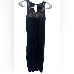 Mossimo Black Beaded Neckline Sleeveless Maxi Dress Lined Round Neck Sz S