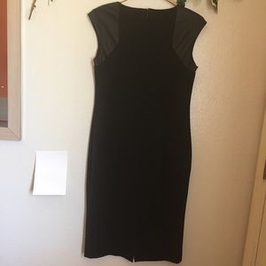 Faux leather around cap sleeves, shoulder, and neck area