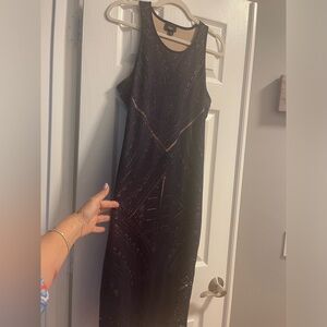Mossimo Black Racer back midi dress fully lined in beige fabric stretchy and comfortable for a contour fit in size medium