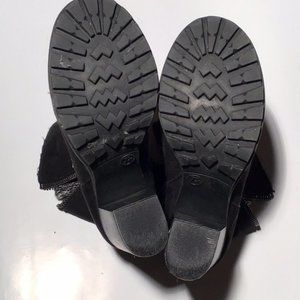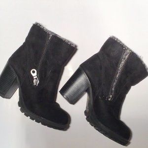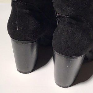 Super cute suede heeled ankle boots with 3.5" block heels. Sweater cuff and lining will keep your toes warm on the coldest days. Heel: 3.5" / Length: 5". Excellent condition. Worn one time.