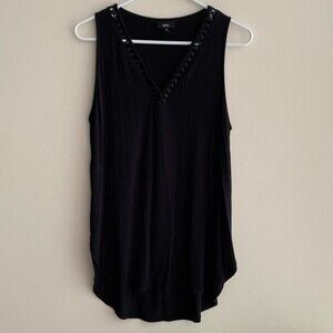 Mossimo Black V-Neck Tank Top with Leather Cutouts, Pleather Lattice, Size Med