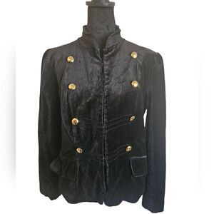 Mossimo Black Velvet Military Gothic Steampunk Gold Button Jacket Size L