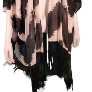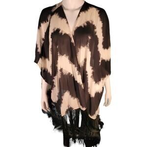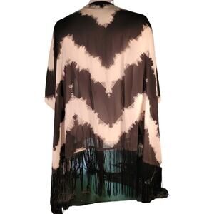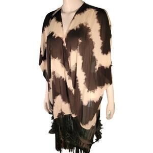Mossimo Black White Fringe Cover-Up Shawl Sz L/XL Indie Boho Beachy Vacation
