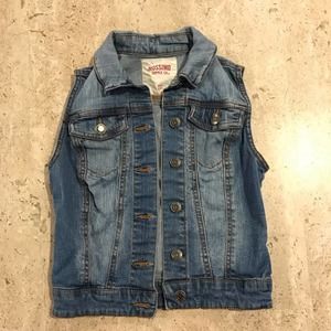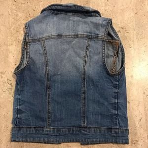 This piece is so adorable! The denim fabric is flexible and far from stiff. Pair this item with a long sleeve tee or sweater with black jeans and boots for a stylish look! It is fitted and short so it does not add bulk to your outfit.