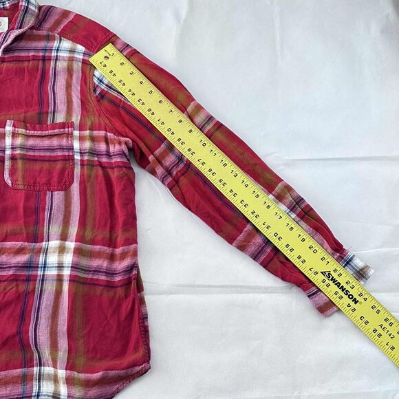 lightweight, oversized, and made from soft rayon for a relaxed drape. Features a button-front design, double chest pockets, and a classic red multicolor plaid pattern thatβs perfect for layering over thermals, tanks, or under cozy cardigans.