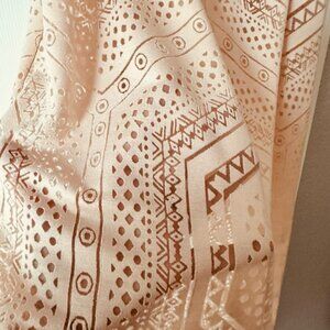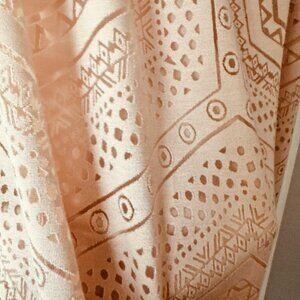 Chic maxi dress with geometric patterns. Soft peach tones. Perfect for any occasion.