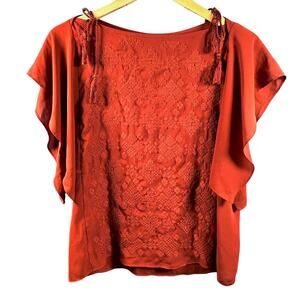 Mossimo Burnt Orange Rust Embroidered Boho Blouse Flutter Dark Fairy Size Medium