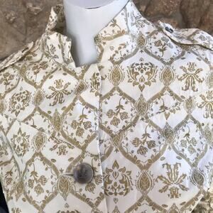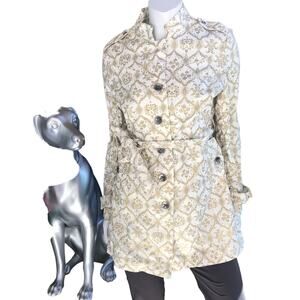 Mossimo Button Down Gold Cream Belted Cotton Trench Coat Women's Size Medium. Measurements: bust: 19, length: 33