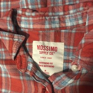 Mossimo button up in red, blue and white. Boyfriend fit, size medium. Soft material, good condition.