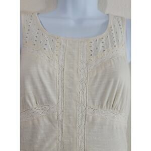 Mossimo Cream Beige Eyelet Bodice Slub Knit Mini Dress Medium Lined Sleeveless