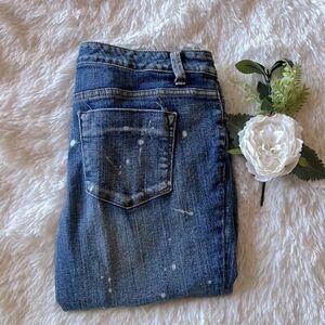 Mossimo Cropped Distressed Bleach Spattered Mid-rise Skinny Jeans 12