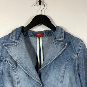 Mossimo Denim Blazer Jacket Pockets Juniors Large Pockets Retro Heritage Preppy