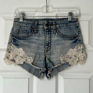 Mossimo Denim Lace Trim High Rise Short - Size 0/25