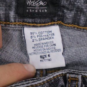 Mossimo Distressed Black Jeans Size 6 Stretch Women Bikercore Edgy Punk Boot Cut