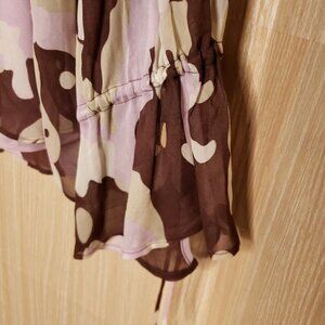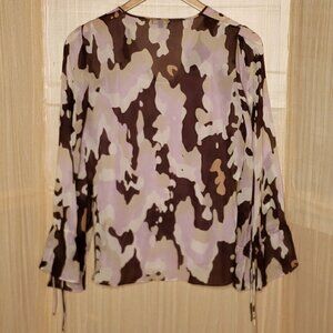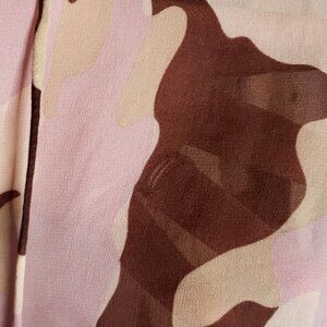 Mossimo Dutti women’s camouflage sheer blouse with added cami 8. Gently used condition. Measurements are: 25 ½" sleeve, 25 ½" from shoulder to hem, and 20 ½" from armpit to armpit.