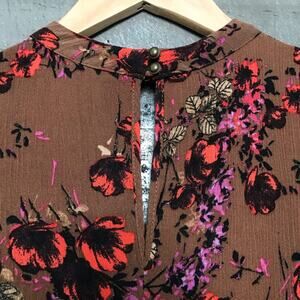 Mossimo Floral Tiered Tank Top Brown Blouse Choker Cutout Fairy Preppy Size S