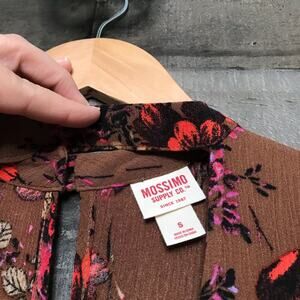 Mossimo Floral Tiered Tank Top Brown Blouse Choker Cutout Fairy Preppy Size S