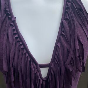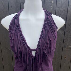 Mossimo Fringe Halter Swimsuit V-Neck Lightly Padded Cups, Chocolate Cherry, Med