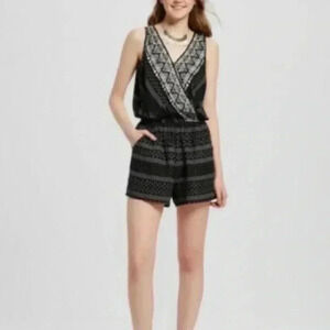 Mossimo Gauze Aztec Boho Black Romper w/Pockets