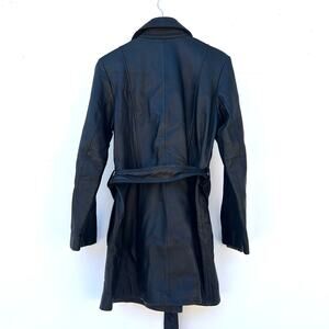 Mossimo Genuine Leather Belted Trench Coat Black Jacket Medium Y2K Buttons