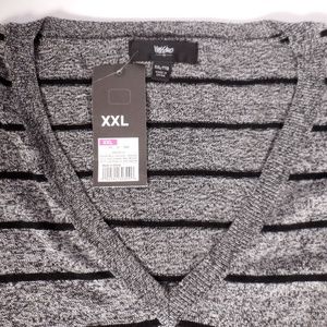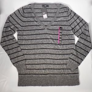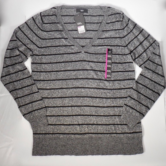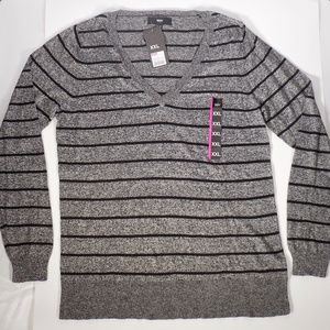 Mossimo Juniors XXL Gray Black Stripe Knit Sweater V-Neck Lightweight Pullover