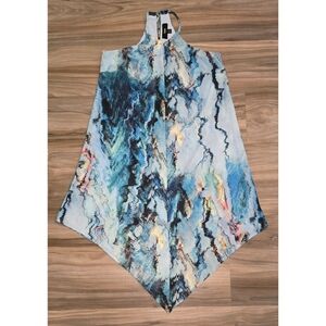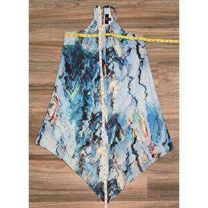 Elevate your summer wardrobe with this Mossimo halter style dress featuring a unique handkerchief hem and vibrant blue marble-like print. Lightweight and flowy, this dress offers both comfort and flair for casual outings or warm weather events. The halter neckline adds a chic, flattering touch to this versatile piece.