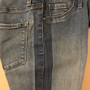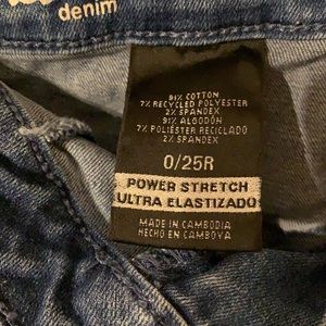 Mossimo high rise jegging. Excellent condition. Dark stripe along side. Distressed bottom. Size - 0/25R