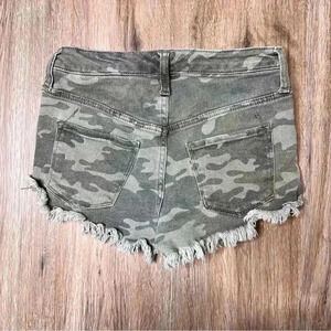 camo shorts, festival fashion, distressed denim, high waisted shorts, summer style, target brand, frayed hem, camouflage print, boho shorts, jean shorts, size 00, petite shorts, concert outfit, casual wear, military style