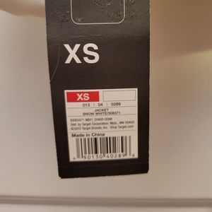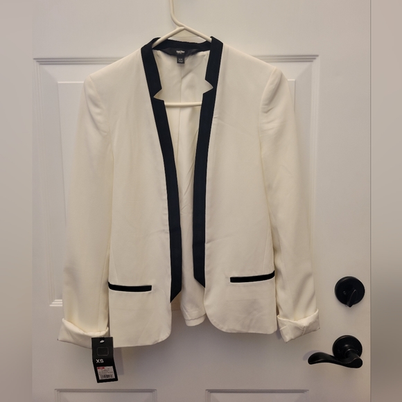 Mossino jacket, size is extra small (XS), color is white with black trim