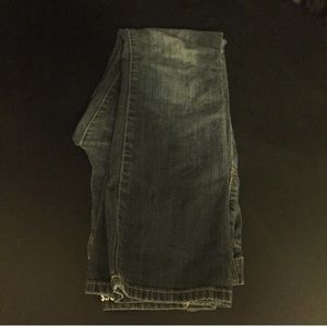 Mossimo supply co boot cut, fit 6, size 9 short jeans. They're a juniors size so they fit smaller than a women's nine. They've been worn and have some wear on the bottom trim, but are still in good condition, and have plenty of life left. They're not a heavy jean, rather light. Plus, the pocket lining is adorable.