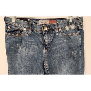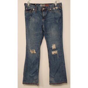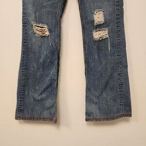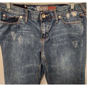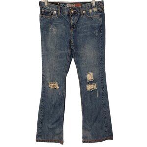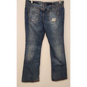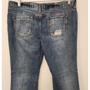 Mossimo Jeans Blue Denim Mid Rise Modern Boot Cut Distressed Womens 15 34x32
