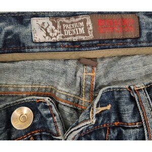 Mossimo Jeans Womens 15 - 34X32 Blue Denim Mid Rise Modern Boot Cut Distressed.