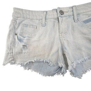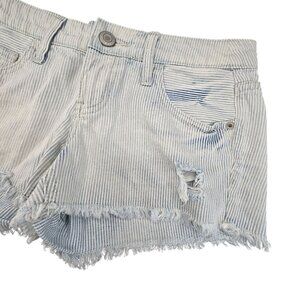 Mossimo Juniors Shorts Blue White Striped Distressed Denim Shorts Size 5 JJ3926