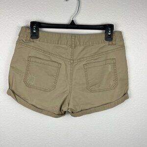 Mossimo | Khaki Womens Distressed Chino Cuffed Mid Rise Cotton Shorts, 4
